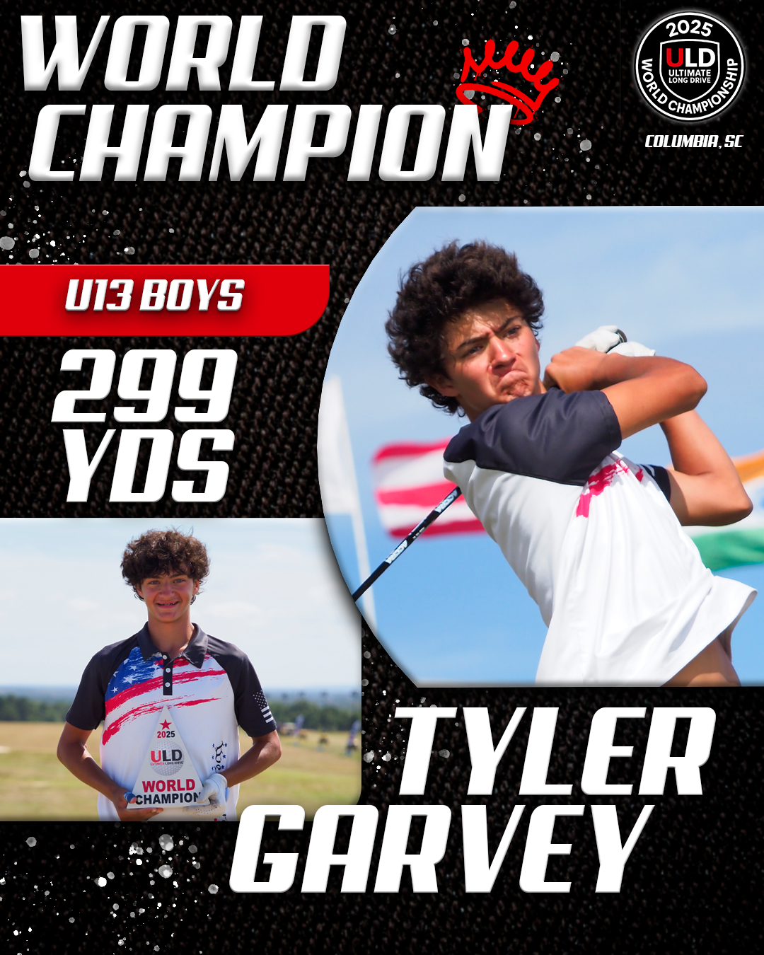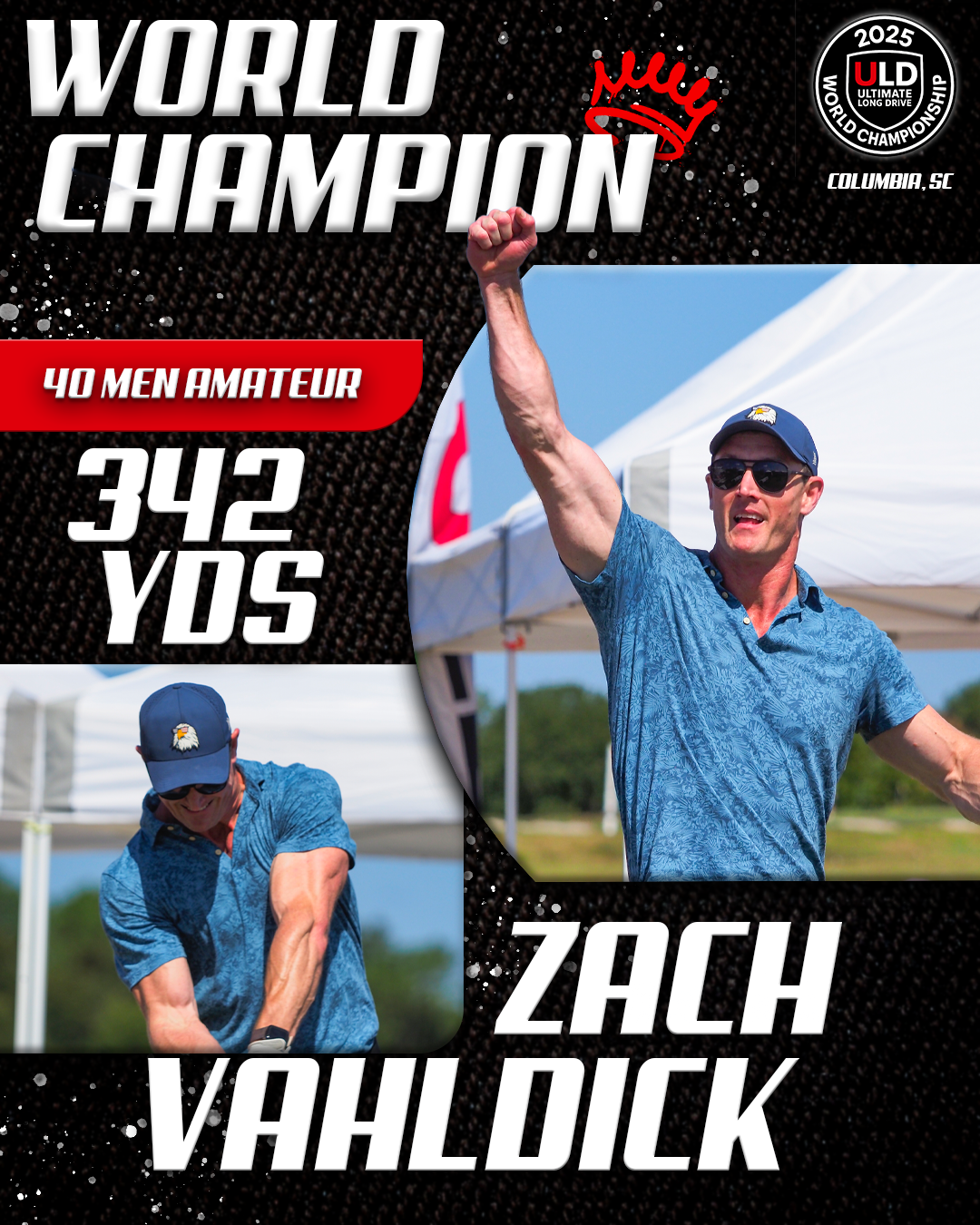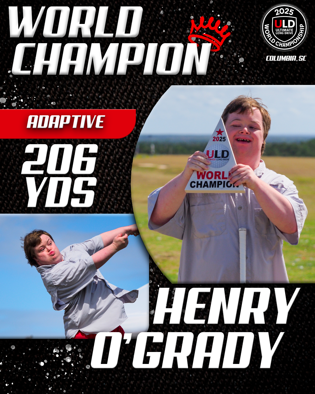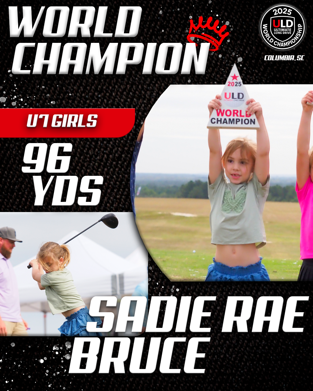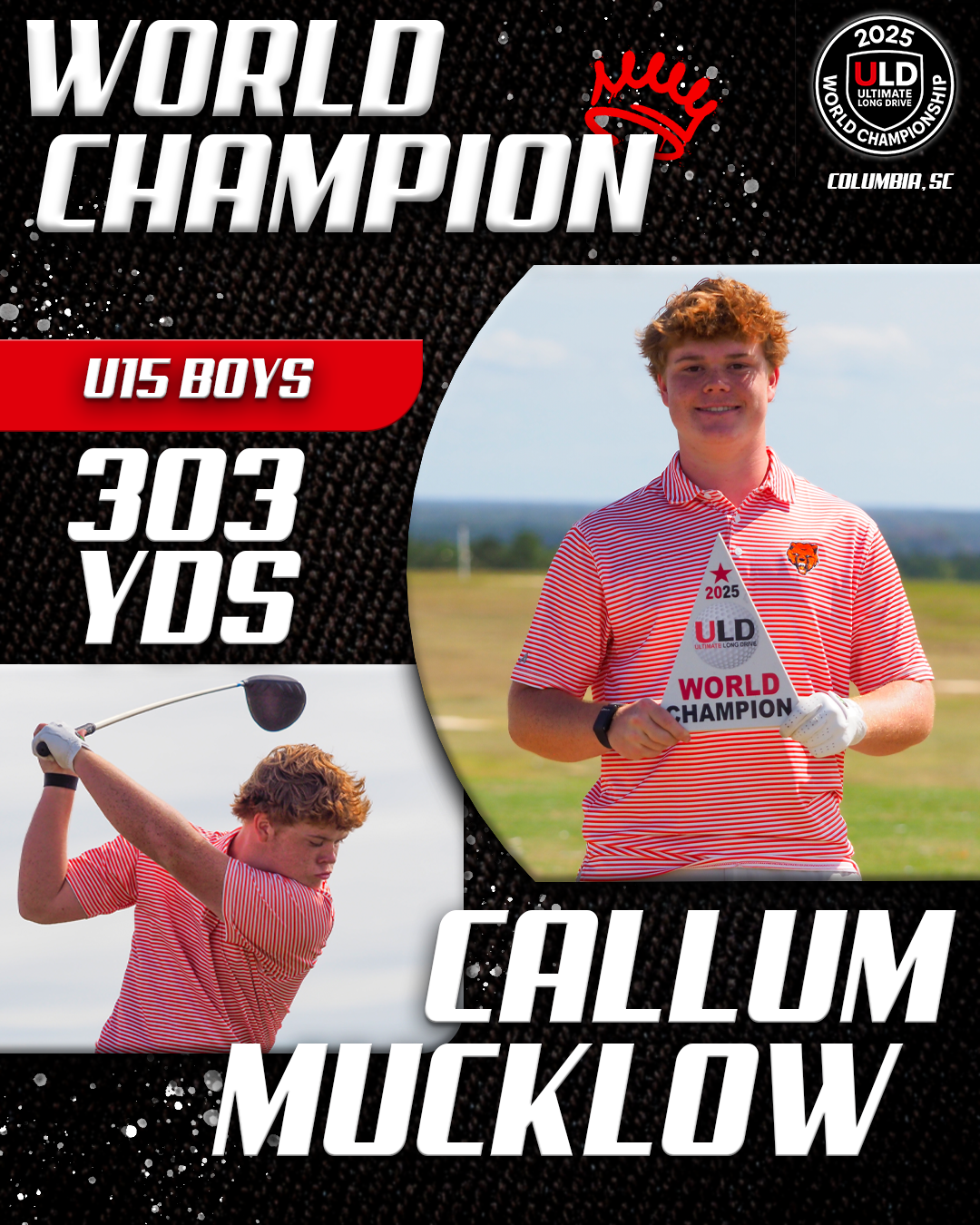 Returning to the backyard of her college golf days, University of South Carolina alumna Adrienne McDonald claimed victory in the Women’s Open Pro Division, topping Sofia Arthur in a memorable finish. Sofia won the ladies Open Amateur division. Jarret Myers, in his first year of long drive competition took the win in the Open Men’s Amateur division.