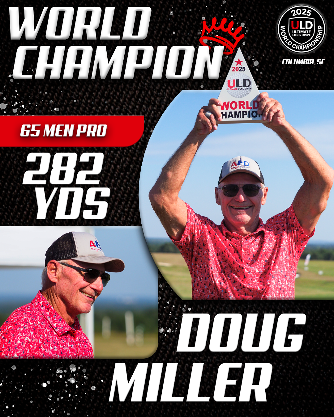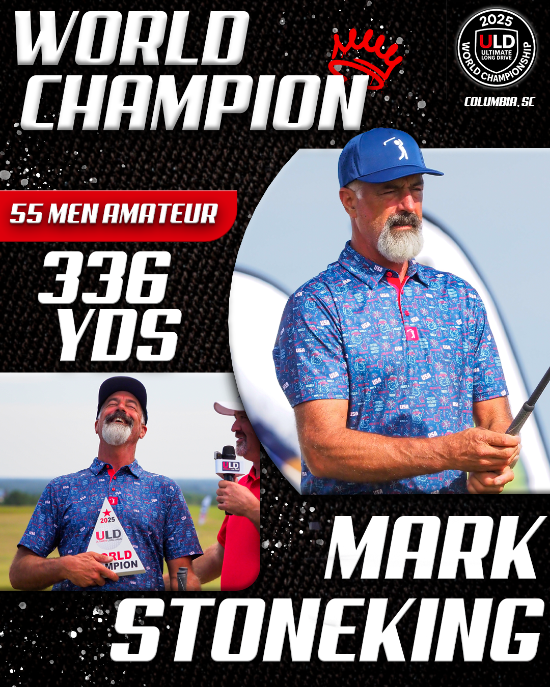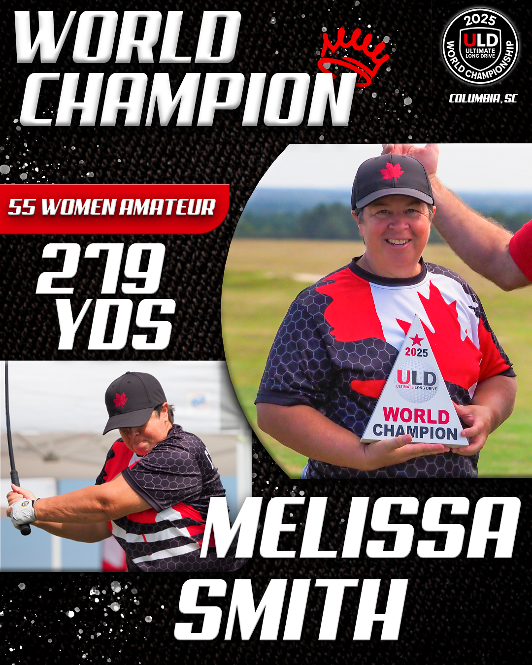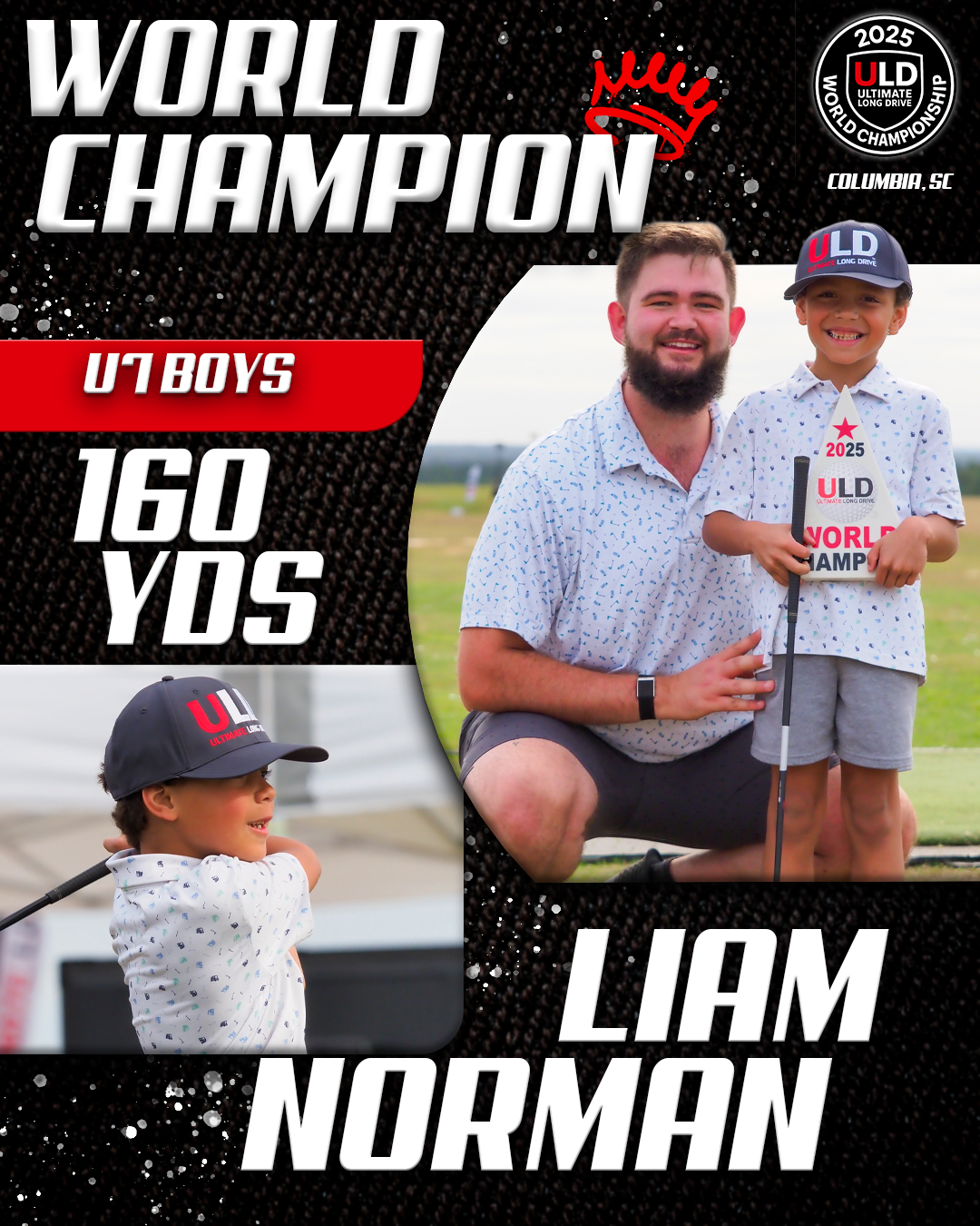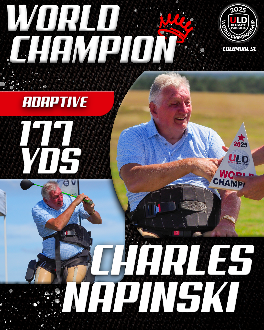Returning to the backyard of her college golf days, University of South Carolina alumna Adrienne McDonald claimed victory in the Women’s Open Pro Division, topping Sofia Arthur in a memorable finish. Sofia won the ladies Open Amateur division. Jarret Myers, in his first year of long drive competition took the win in the Open Men’s Amateur division.