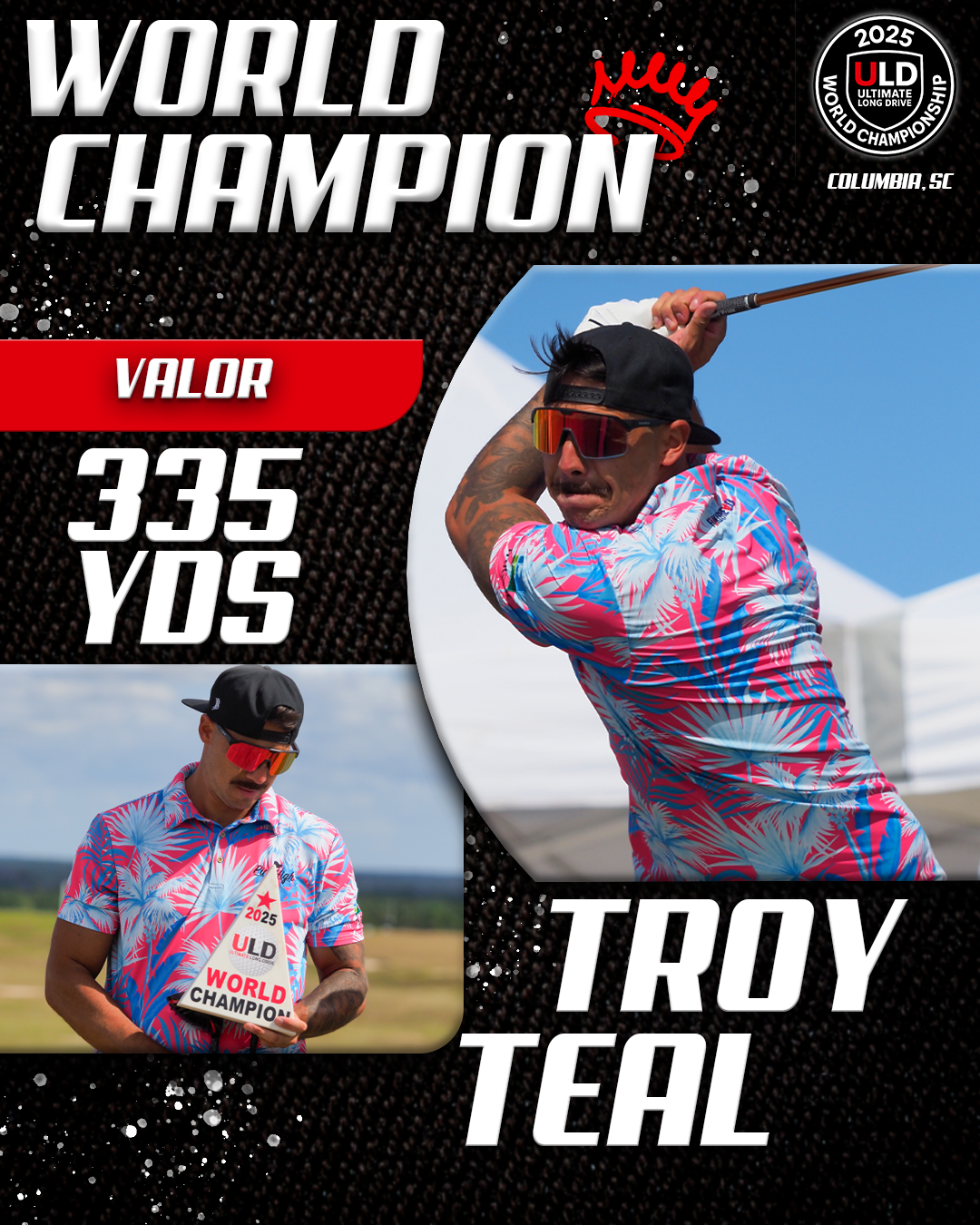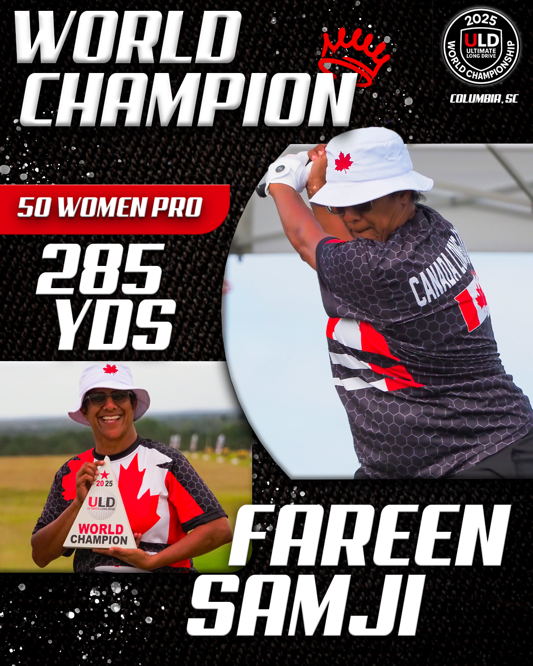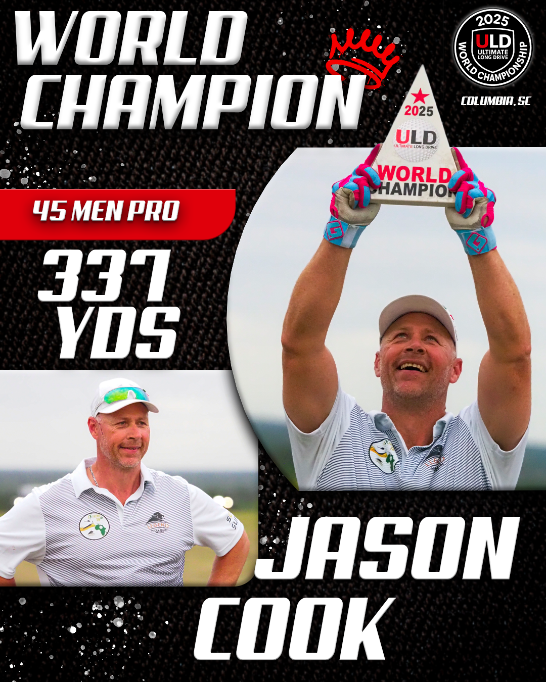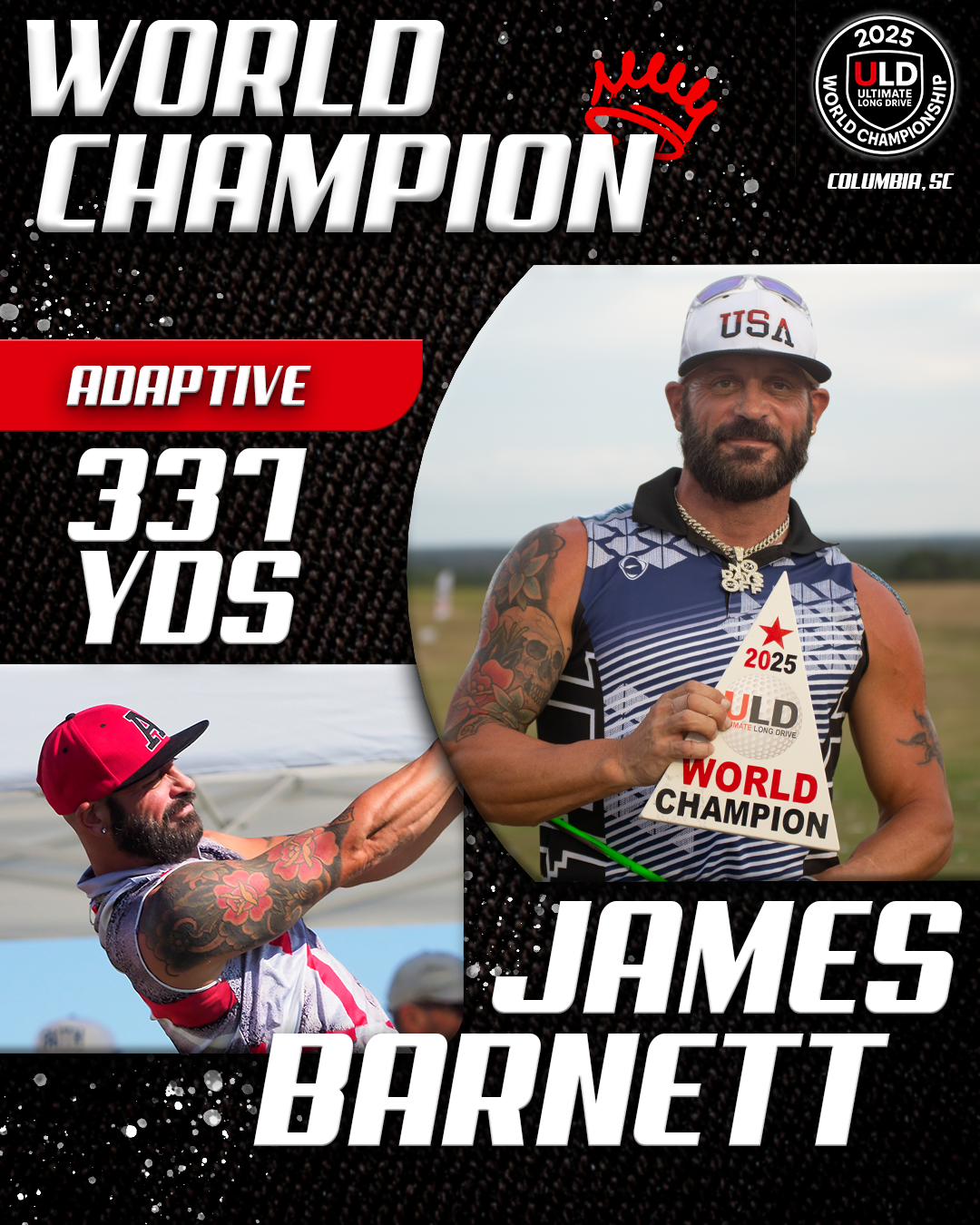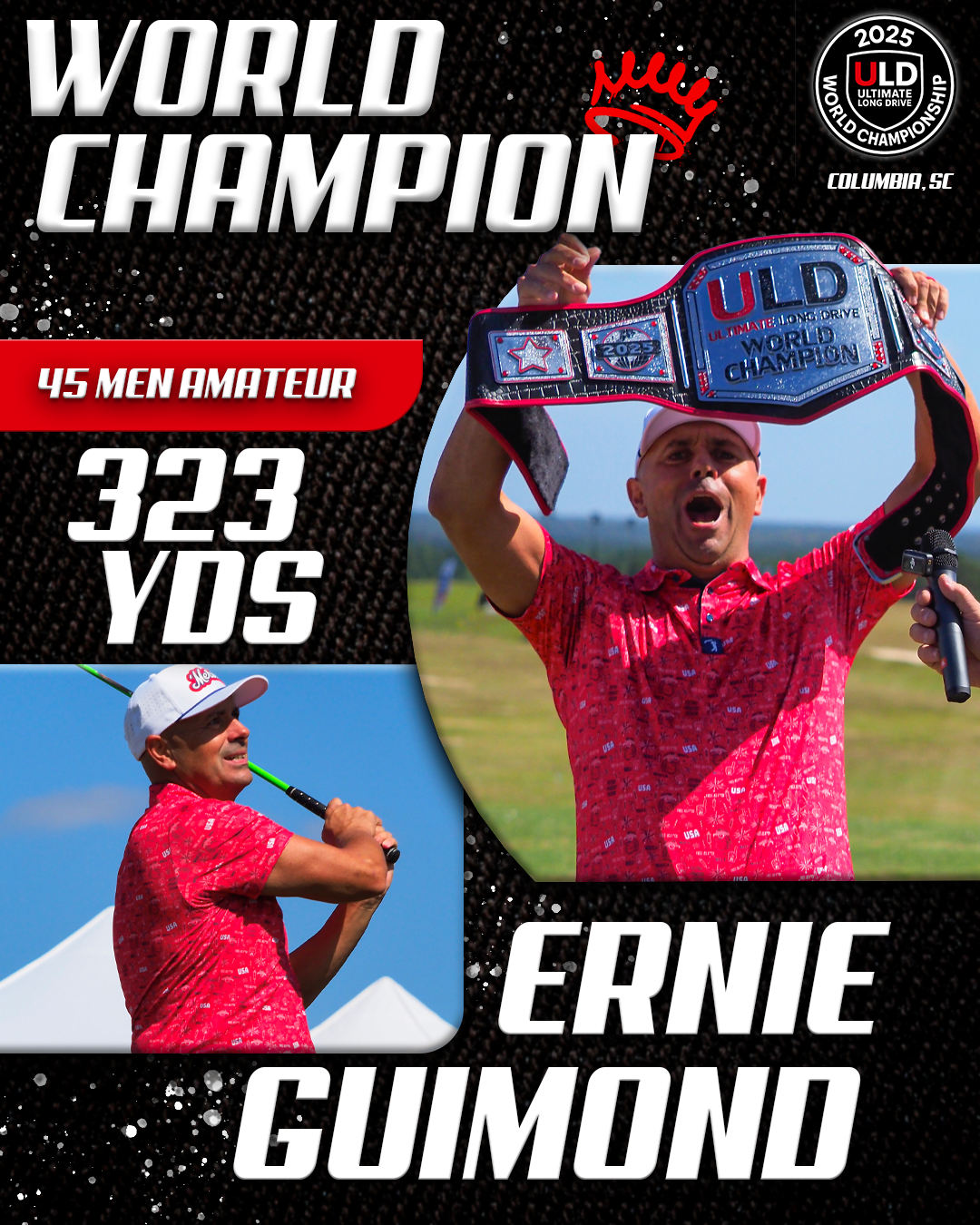 Returning to the backyard of her college golf days, University of South Carolina alumna Adrienne McDonald claimed victory in the Women’s Open Pro Division, topping Sofia Arthur in a memorable finish. Sofia won the ladies Open Amateur division. Jarret Myers, in his first year of long drive competition took the win in the Open Men’s Amateur division.